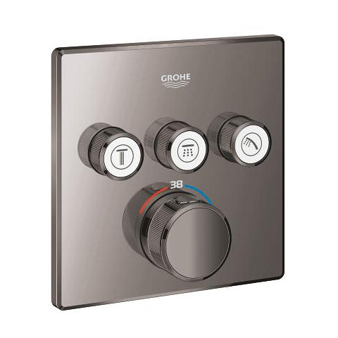يتميز هذا الترموستات من جروهي بتصميم متطور يجمع بين التكنولوجيا الذكية والمظهر العصري الأنيق باللون الرمادي الغامق ليمنح الحمّام تجربة استخدام فاخرة ومتكاملة