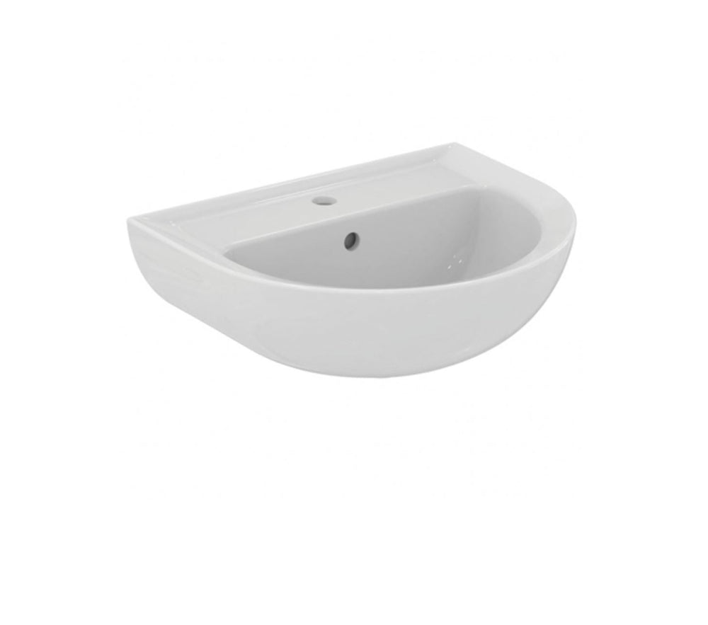 حوض صيني من ايديال ستاندرد، بتصميم مثبت على الحائط من مجموعة سبيس. مصنوع من السيراميك عالي الجودة باللون الأبيض، بحجم 55 سم.