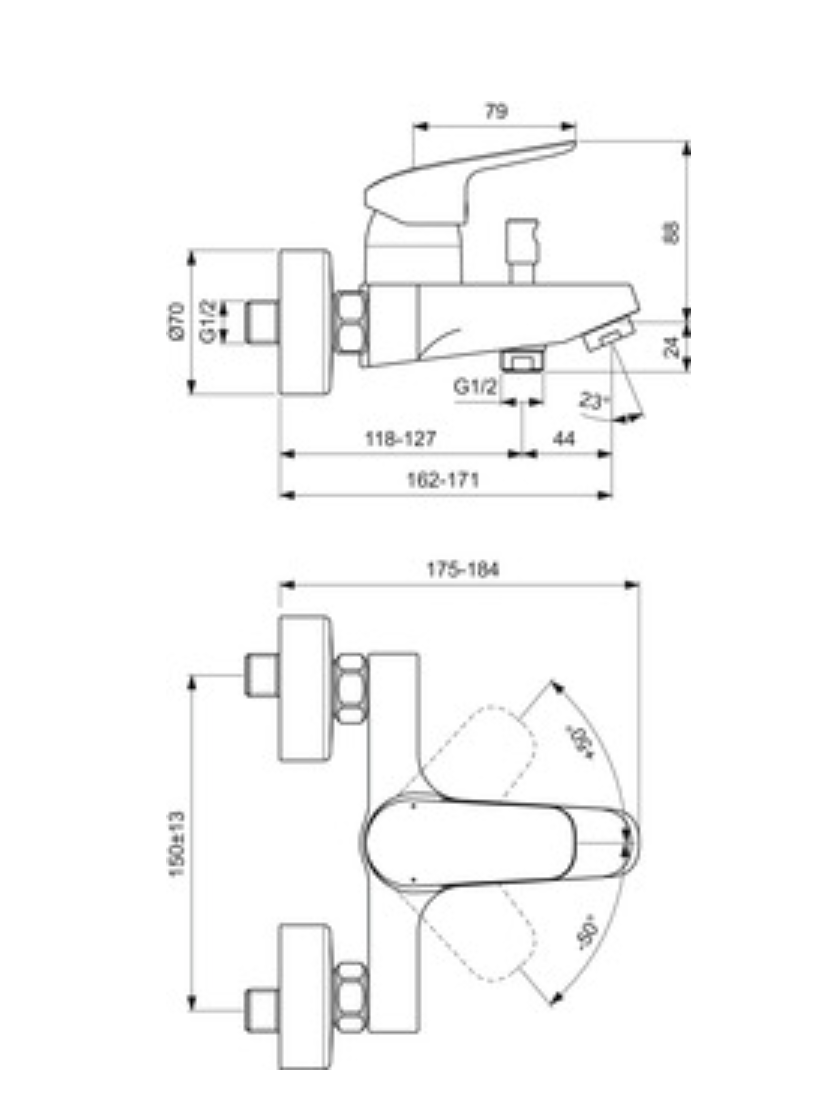 خلاط بانيو كينورا بلاس من أيديال ستاندرد باللون الكروم يتميز بتصميم عصري يناسب مختلف أنماط الحمامات. .