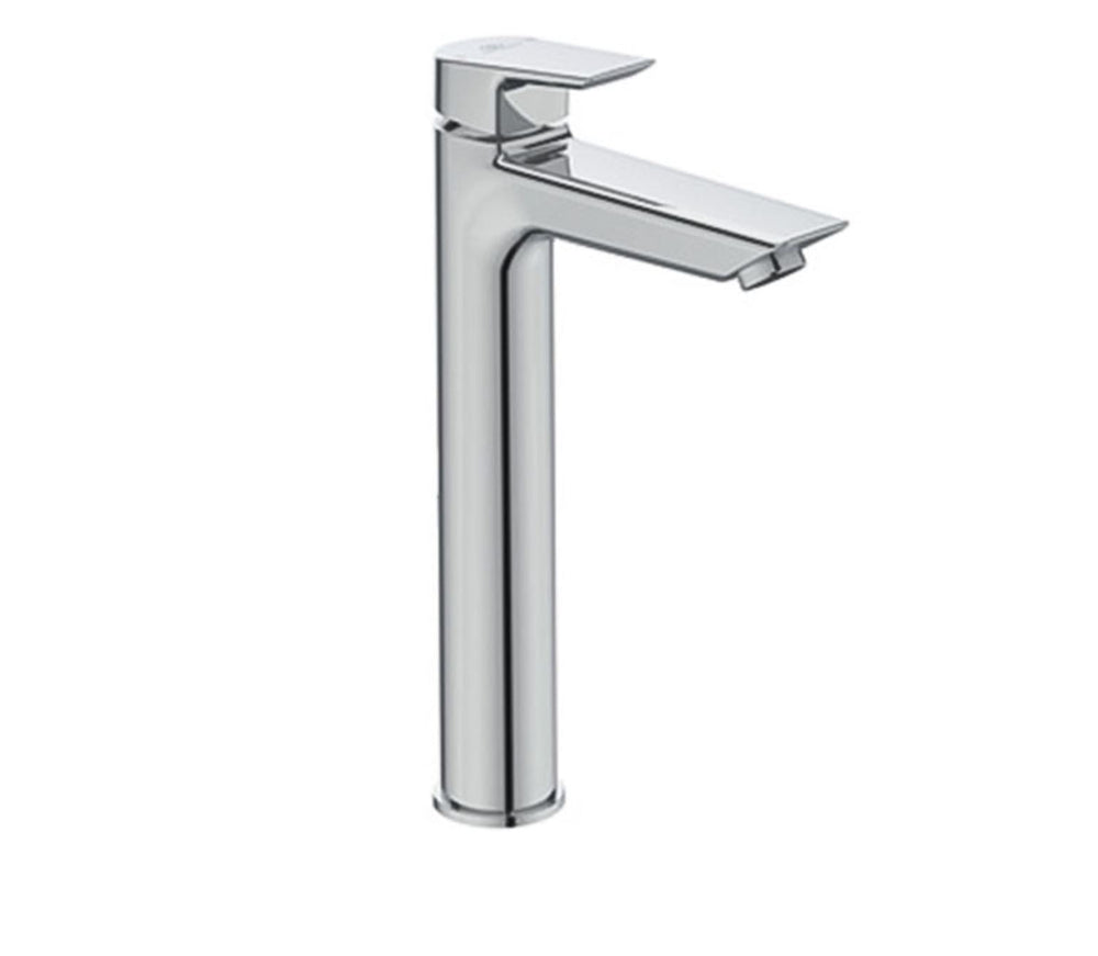 خلاط حوض عالي من إيديال ستاندرد طراز تيسي، يتميز بذراع تحكم واحد لسهولة الاستخدام وقلب سيراميك لضمان أداء سلس وطويل الأمد. مصمم خصيصًا للأحواض المرتفعة عن الرخامة.