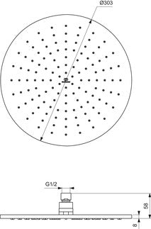رأس دش دائري بقطر 300 مم، تجمع بين التصميم العصري والأداء المتميز لتجربة استحمام مريحة وموزعة بالتساوي