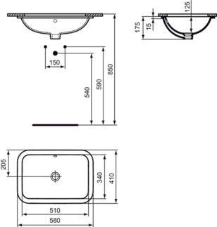 حوض كونكت من ايديال ستاندرد بتصميم أنيق يثبت تحت السطح الأفقي . يأتي باللون الأبيض وبأبعاد 58×41 سم .