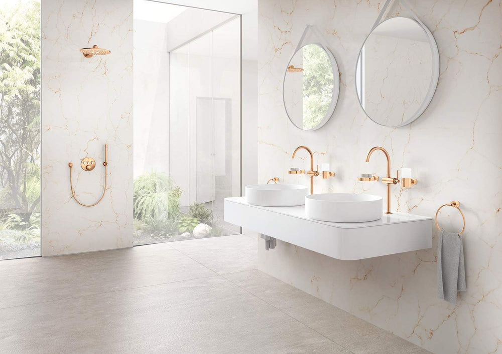 مخرج سماعة جروهي باو يتميز بتصميم أنيق وتشطيب روز جولد لامع يضيف لمسة فاخرة إلى حمامك، ويوفر مخرج مياه ثابت ومتوافق مع أنظمة الدش المختلفة من جروهي، مما يجعله مثالياً لإضافة لمسة جمالية وعملية في آنٍ واحد.