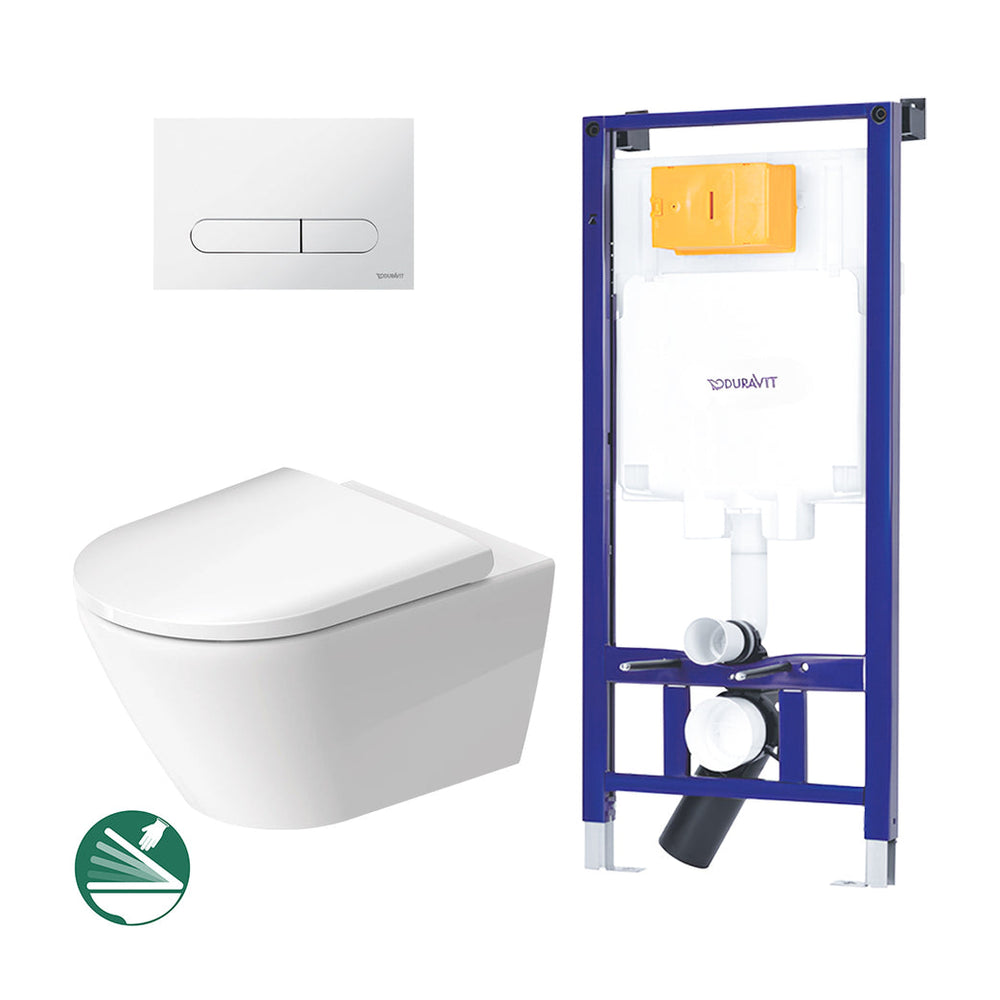 نظام خزان دفن كامل من ديورافيت مع وش تحكم وقاعدة دي نيو ريمليس معلقة و قاعدة ريمليس لسهولة التنظيف وتدفق ماء فعال و خزان دفن عالي الجودة بكفاءة عالية في استخدام المياه.شطاف داخلي مدمج لراحة أكبر ونظافة أفضل.