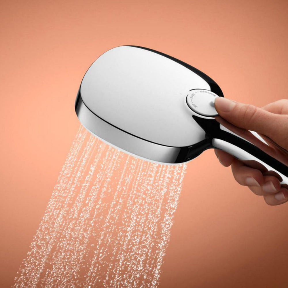 طقم دش عامود تمبستا كيوب 110 من جروهي — نمطا رش (Rain / Jet)، تصميم مربع أنيق مع عامود 600 مم.