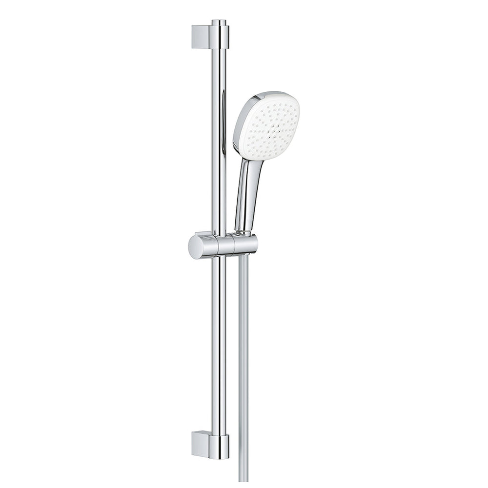طقم تمبستا كيوب 110 من جروهي بحامل جداري ومخرج جداري وخرطوم، 3 أنماط رش (Rain / Jet / Massage) مع محوّل SmartSwitch.