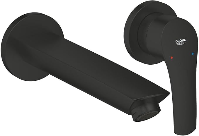 خلاط حوض جداري من جروهي بتصميم عملي وتشطيب أسود مط، مُخصص للتركيب الجداري النهائي بدون الجسم المخفي.
