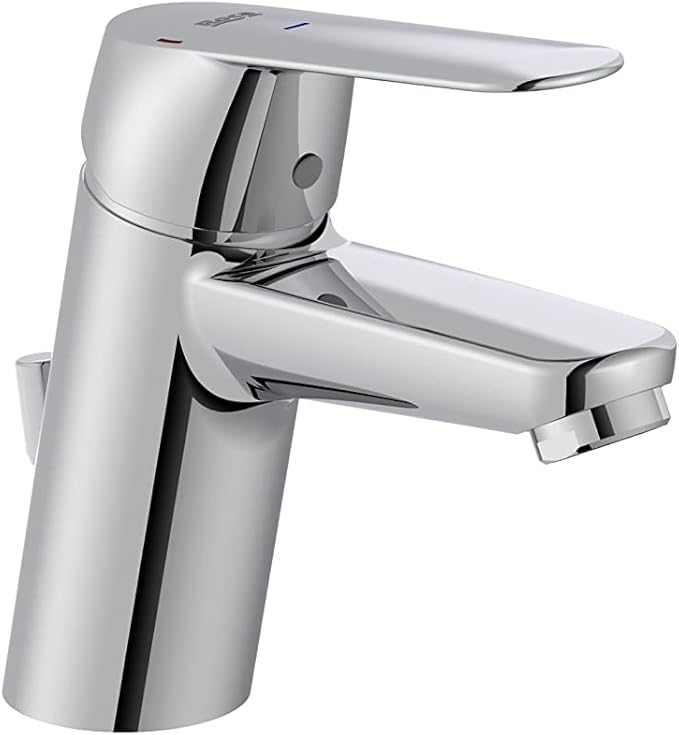 خلاط حوض روكا ألفا بطابق وطلاء كروم بتصميم هاند مكسر يمنح تحكم دقيق بدرجة الحرارة وتدفق المياه